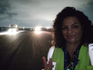 Na manutenção civil, a engenheira Jaine dos Santos Pereira acompanha diariamente as condições da infraestrutura do aeroporto e planeja intervenções necessárias para manter a pista e as estruturas dentro dos padrões exigidos pela aviação. “Nosso principal ponto de atenção é o pavimento da pista. Monitoramos constantemente as condições e realizamos medições técnicas para garantir que tudo esteja dentro das normas”, explica. Quando algum problema é identificado, a resposta precisa ser rápida. “O trabalho é planejado para que o aeroporto continue funcionando sem atrasos ou cancelamentos de voos”, relata.