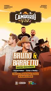 O Camboriú Fest 2026, principal atração das comemorações de 142 anos que Camboriú completa no domingo (5), abre a programação de quatro dias, nesta quinta-feira (2), com show da dupla sertaneja Bruno & Barreto. O evento é uma seletiva para a Festa do Peão de Barretos. O prefeito Leonel Pavan disse que o campeão do Camboriú Fest representará a região na competição nacional. “Nestes quatro dias do Camboriú Fest, estamos realizando uma etapa nacional, reunindo peões destacados do país, que disputam uma vaga para a Festa do Peão de Barretos. Estamos retomando um evento que ficou quase 10 anos sem acontecer. E tudo de graça, aberto ao público”, convidou o prefeito. O Camboriú Fest será celebrado até domingo (5) em uma grande estrutura montada no Instituto Federal Catarinense. Além da dupla sertaneja Bruno & Barreto, a festa terá shows musicais com Israel Lucero, Felipe & Falcão, Loubet, além de música tradicionalista com o cantor Gaúcho da Fronteira. As apresentações acontecem durante a durante a noite, e a entrada é gratuita durante todos os dias de evento.